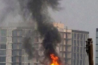 14 Mart'ta Irak'ın Bağdat kentindeki ABD Büyükelçiliği binasına füze isabet etmesinin ardından dumanlar yükseliyor. Kaynak: Sosyal medya