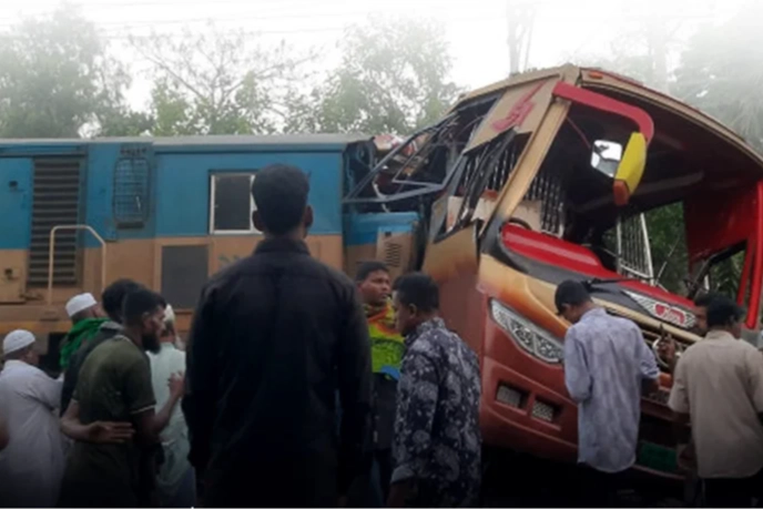 İlk raporlara göre, Chattogram'a giden bir posta treni, rayları geçerken otobüse çarptı.