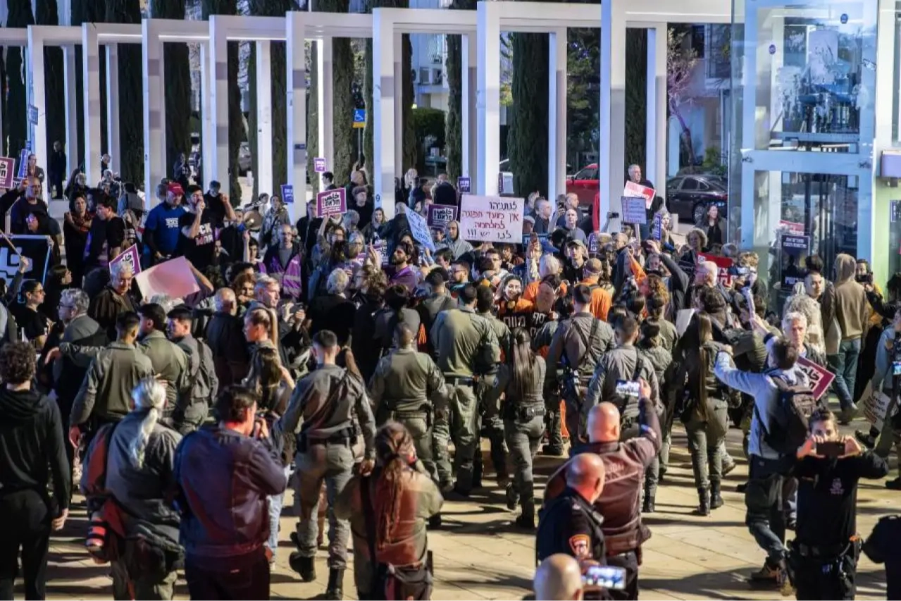 Savaş zamanı güvenlik düzenlemeleri uyarınca, İran ve Lübnan'dan gelen günlük füze saldırıları nedeniyle İsrail, 50 veya daha fazla kişinin bir araya gelmesini yasaklıyor. Düzenleyen bir grubun temsilcisi, protestoların izinsiz yapıldığını söyledi.