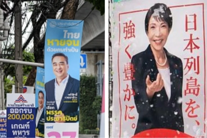 Diğer yandan eski başbakan Thaksin Shinawatra'nın aile hanedanı tarafından desteklenen Pheu Tay partisi var.