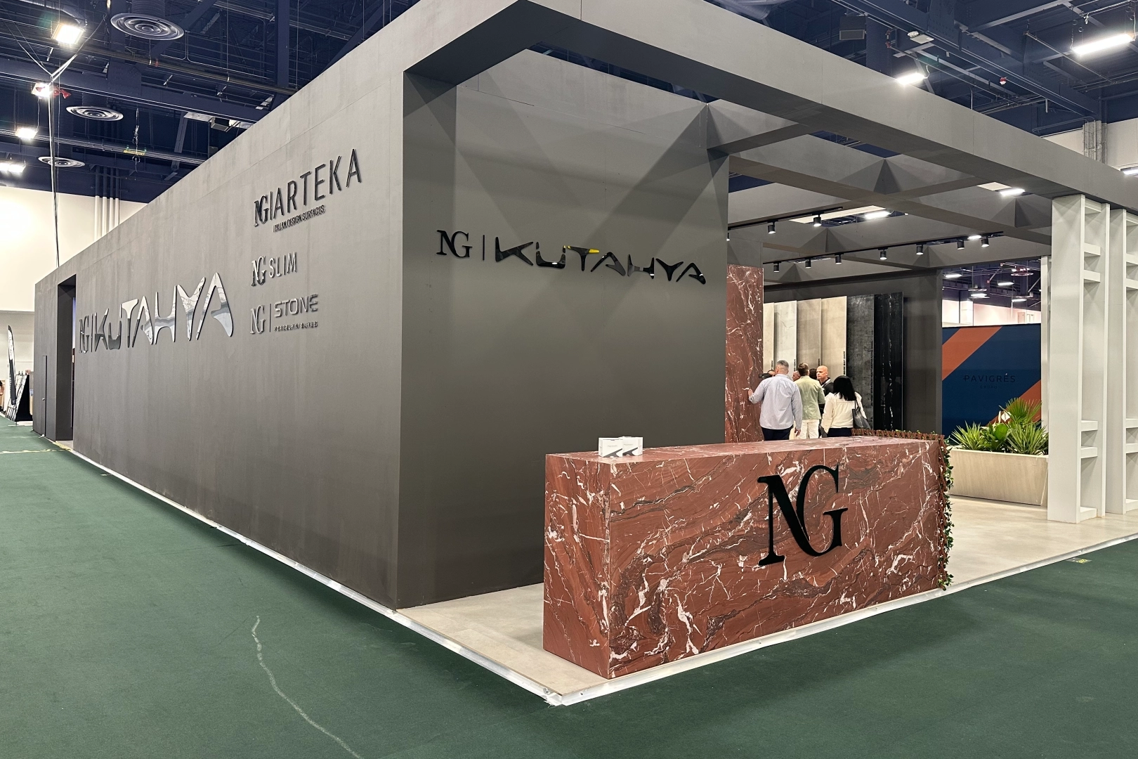 NG Kütahya Seramik’in sektörde ses getiren markalarından NG Stone ve NG Slim de Coverings 2026’da yoğun ilgi gördü. NG Stone, 160x320 cm ebatıyla büyük ebatlı porselen tezgâh kategorisinde dikkat çeken bir koleksiyon olarak fuarda yer aldı. NSF International tarafından verilen gıda temas sertifikasına sahip olan NG Stone, Türkiye’nin ABD menşeili sertifikaya sahip ilk porselen seramik markası olma özelliğini taşıyor.
