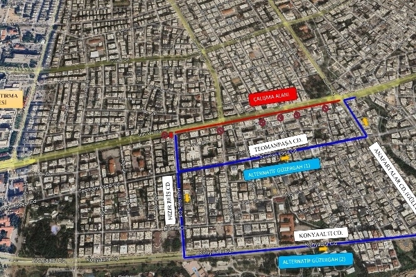 ANTALYA (İGFA) -Antalya'da çalışmalar kapsamında 100. Yıl Bulvarı’nın Hızır Reis Caddesi ile Anafartalar Caddesi (Güllük Kavşağı) arasında kalan yaklaşık 730 metrelik bölümü 8 Mart Pazar günü trafiğe kapatılarak sıcak asfalt ile kaplanacak.