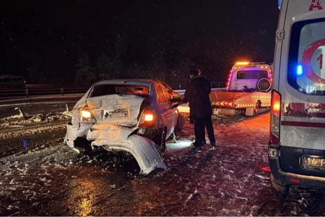 Görüş mesafesinin azaldığı ve zeminin karla kaplandığı bu noktada; 3 otomobil, 2 tır, 1 yolcu otobüsü ve 1 kamyonet zincirleme kazaya dahil oldu. Kazada 2 kişi yaralandı.