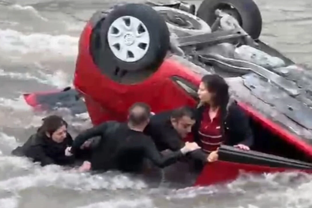 İhbar üzerine olay yerine Amasya Belediyesi İtfaiye Sualtı Kurtarma ekipleri, polis, AFAD ve acil sağlık ekipleri sevk edildi. Ekiplerin çalışması sonucu sürücü Nehir Kamışlı ile yanında bulunan annesi Hanife Kamışlı araçtan çıkartıldı. İtfaiyecilerin üniformalarını giydirdikleri anne ve kızı, duvardan sarkıtılan merdivenle yukarı tırmandı. Durumlarının iyi olduğu görülen anne ve kız ilk müdahalenin ardından ambulansla hastaneye kaldırıldı.