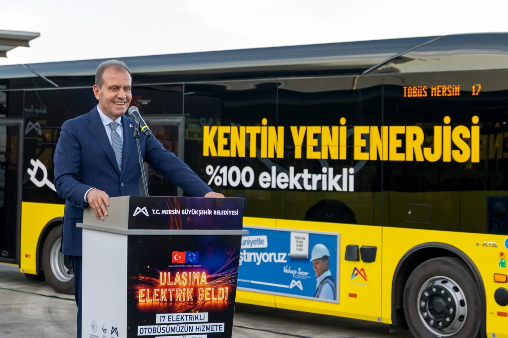 Türkiye Belediyeler Birliği (TBB) Başkan Vekili ve Mersin Büyükşehir Belediye Başkanı Vahap Seçer, Mersin Büyükşehir Belediyesi’ne Avrupa Birliği (AB) tarafından eş finanse edilen 17 adet ve farklı bir kaynaktan hibe olarak aldıkları 1 adet olmak üzere toplam 18 elektrikli otobüs ile 14 Adet 180 kWh kapasiteli şarj ünitesinin ‘Hizmete Alım Töreni’ne katıldı. Mersin’de yeni bir dönemi ve vizyonu başlatan Büyükşehir ile kent ulaşımında elektrikli otobüs dönemine adım atılmış oldu. Hizmete alınan 18 elektrikli otobüs, Mersin Büyükşehir Belediyesi Ulaşım Dairesi Başkanlığı bünyesinde Mersinlilere hizmet verecek.