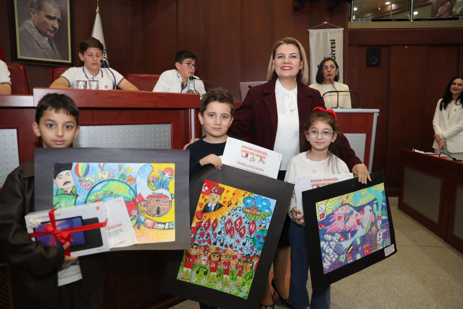 İzmit Belediyesi Kadın ve Aile Hizmetler Müdürlüğü tarafından düzenlenen 23 Nisan Ulusal Egemenlik ve Çocuk Bayramı temalı resim ve oyuncak tasarımı yarışmasında dereceye giren çocuklar ödüllerine kavuştu. Renkli görüntülere sahne olan törende, çocukların hayal gücü ve emeği büyük beğeni topladı.