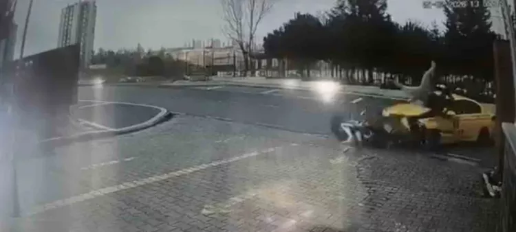 Kaza anı ise güvenlik kamerası tarafından saniye saniye görüntülendi. Görüntülerde motosikletin cadde üzerinde ilerlediği, taksinin dönüş yaptığı sırada iki aracın çarpıştığı ve sürücünün savrulduğu anlar yer aldı.