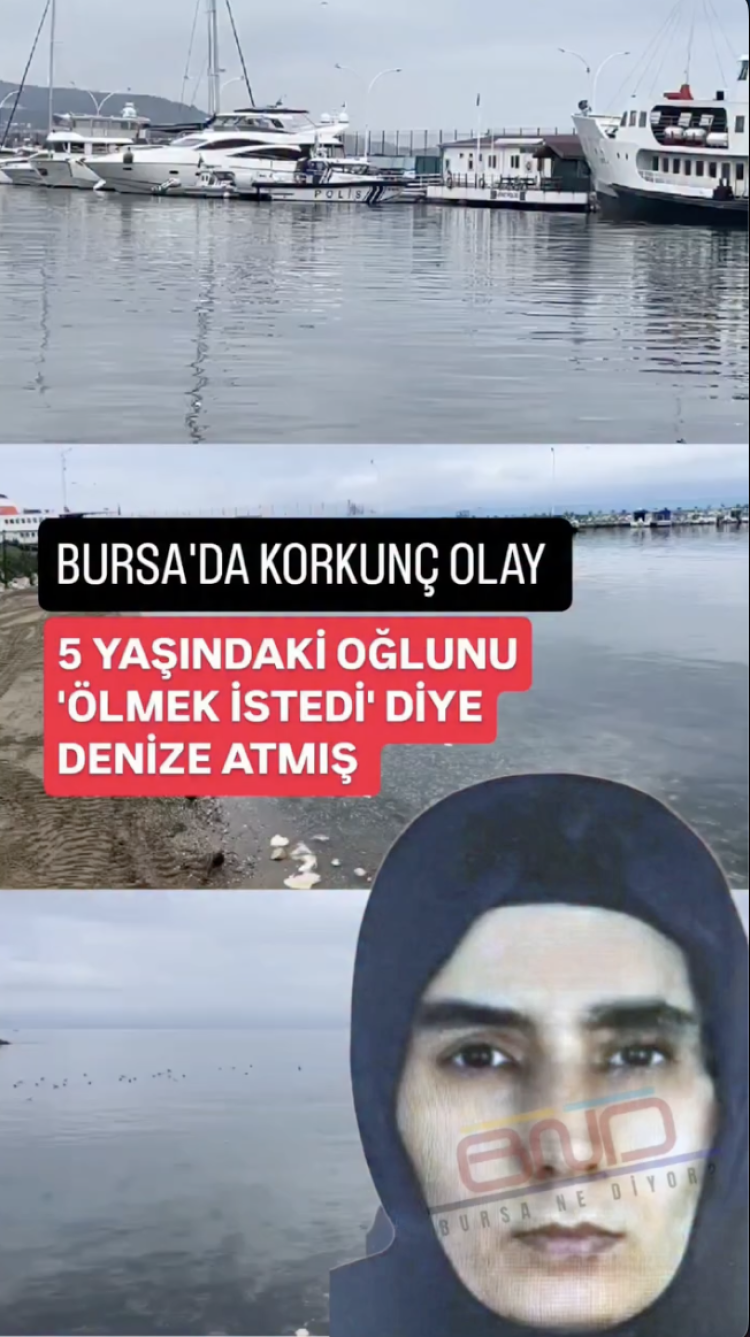 Mudanya'da Sevda Güçlü, 5 yaşındaki oğlu Muhammet Boran'ı denize iterek ölümüne neden olduğu iddiasıyla gözaltına alındı. Psikolojik sorunları olduğuna dair iddialar var. Olayı, ablası Sevda'nın sahilde ıslak halde bulunması sonrası ortaya çıktı.
