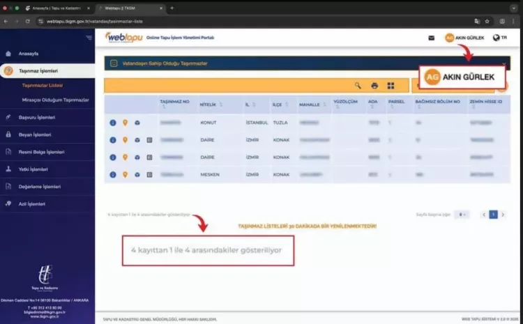 4 tane taşınmazım var